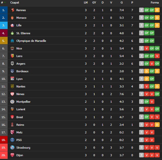 A bajnokság aktuális állása: